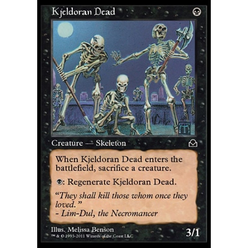 When Kjeldoran Dead enters the battlefield, sacrifice a creature.{B}: Regenerate Kjeldoran Dead.
